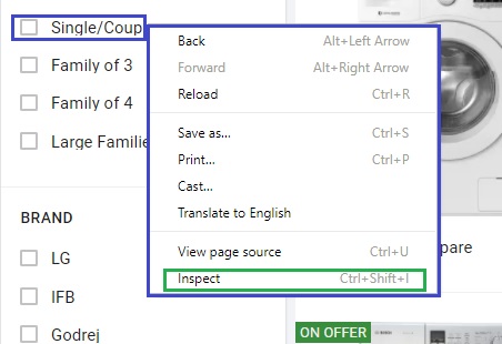 Select “Inspect”, in browser’s developer panel opened